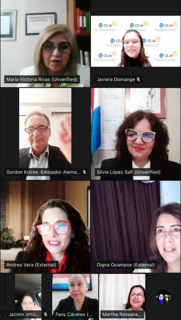 El evento de apertura contó con la participación de María Victoria Rivas, Consejera del Consejo Directivo de CEJA; Silvia López Safi, directora de la Secretaría de Género del Poder Judicial de Paraguay; y Andrea Vera Aldana, doctora en Ciencias Jurídicas, con destacada trayectoria académica y profesional en temas de género y justicia.