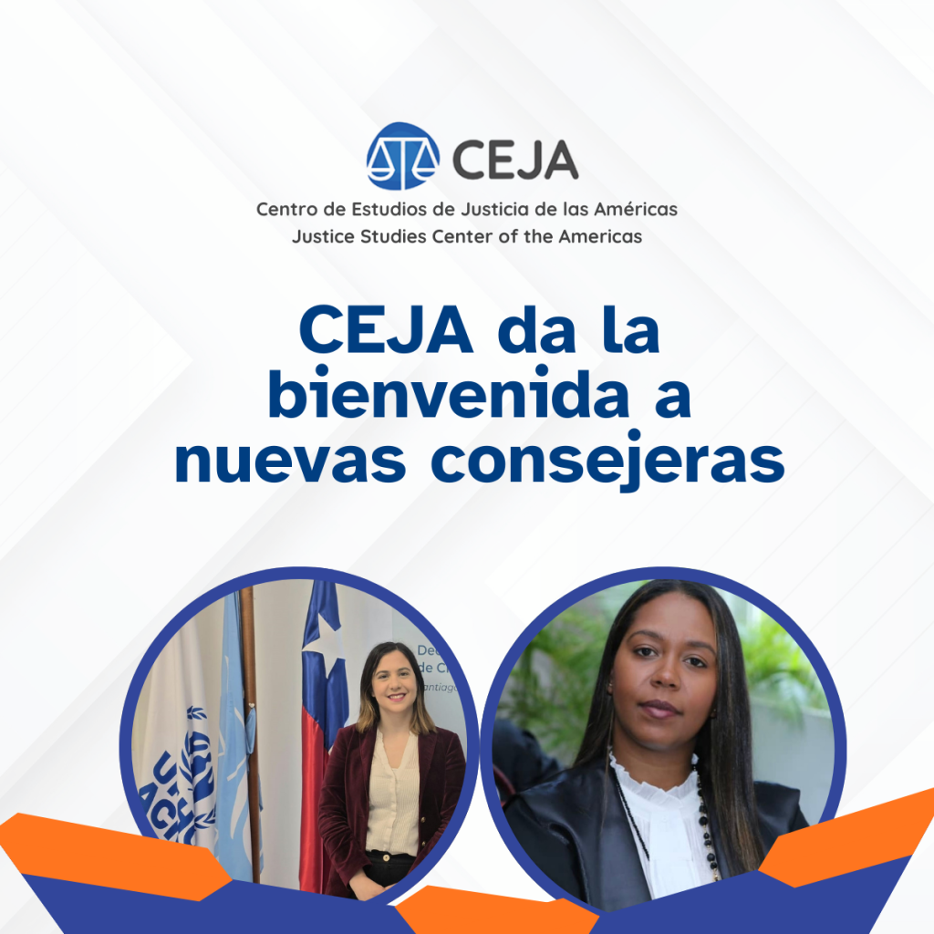 El Centro de Estudios de Justicia de las Américas (CEJA) da la bienvenida a Catalina Fernández Carter (Chile) y Christelle St-Natus Cavé (Haití), quienes se integran como nuevas consejeras. Su formación, compromiso con la justicia y experiencia jurídica en la región aportarán una mirada sólida y especializada al Consejo Directivo de CEJA.