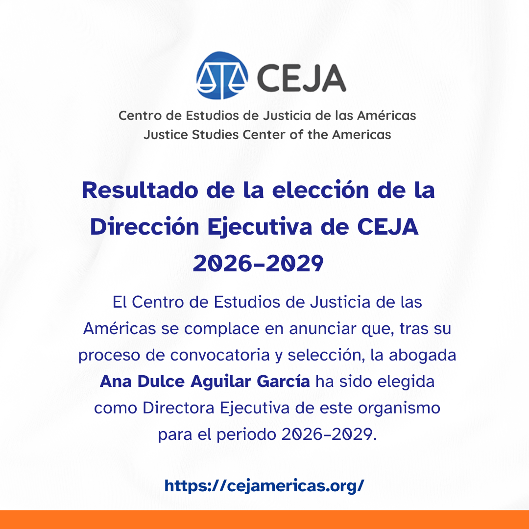 El Centro de Estudios de Justicia de las Américas (CEJA) se complace en anunciar que, tras su proceso de convocatoria y selección, la abogada Ana Dulce Aguilar García ha sido elegida como Directora Ejecutiva de este organismo para el periodo 2026–2029.