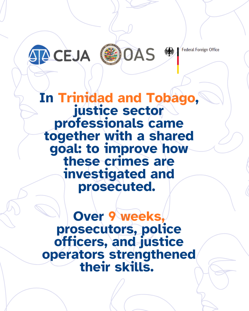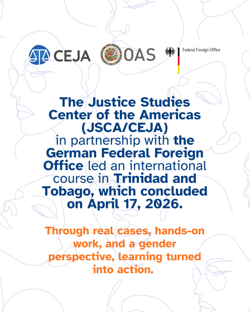 The Justice Studies Center of the Americas (CEJA), in collaboration with the Federal Foreign Office of Germany, continues the implementation of the course “Improving Criminal Prosecution in Cases of Gender-Based Violence in Trinidad and Tobago” aimed at strengthening the criminal justice response to gender-based violence in the country.